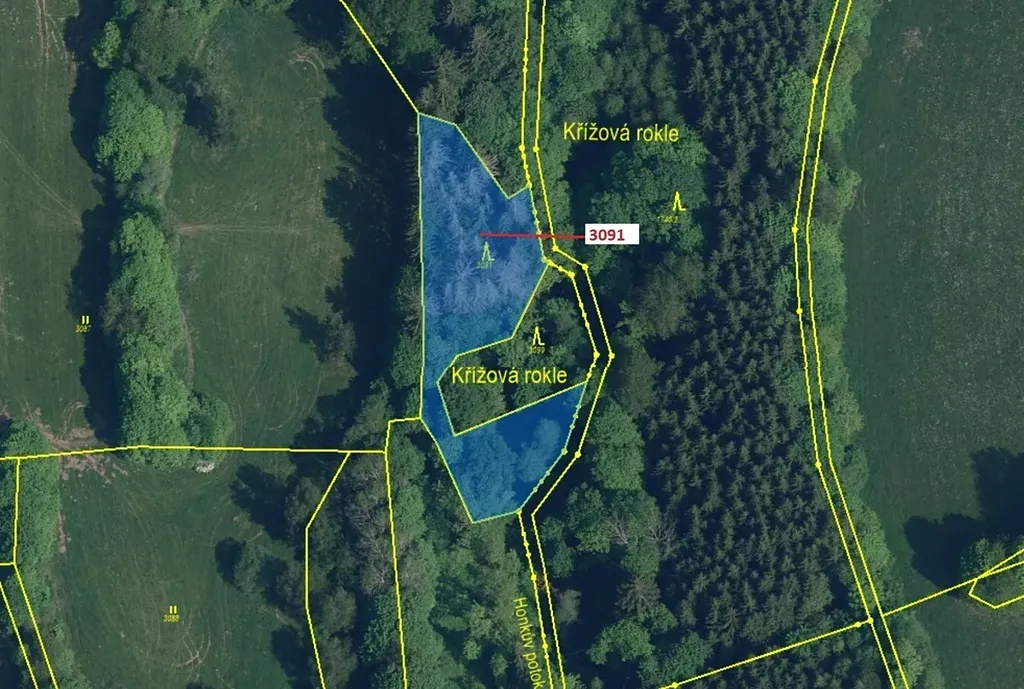 Lesní pozemek o výměře 1964 m2, parcelní číslo 3091, podíl 1/1, katastrální území Benešov u Semil, obec Benešov u Semil, obec s rozšířenou působností Semily, okres Semily, Liberecký kraj.