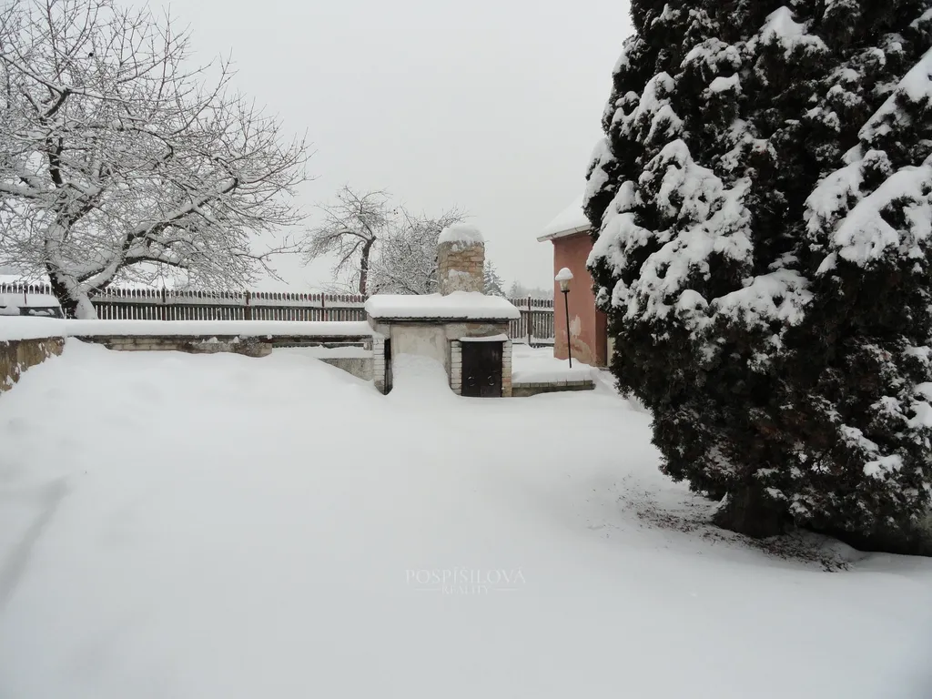 K domu patří další prostory – sklep, garáž, kůlna, dílna, zahrada s dvorkem a horní nevytápěné patro se dvěma menšími pokoji – ideální jako letní přespání pro návštěvy nebo praktický prostor navíc. Celková výměra pozemku je 493 m².