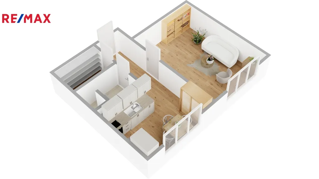 Byt je o dispozici poměrně prostorné vstupní chodby, koupelny, WC, se šikovnou šatnou, nebo komorou, podle potřeby, slunnou kuchyní a pokojem, který je možné užívat jako ložnici i obývací pokoj. Byt je orientovaný na západ. Parkování je možné před domem na veřejném parkovišti.