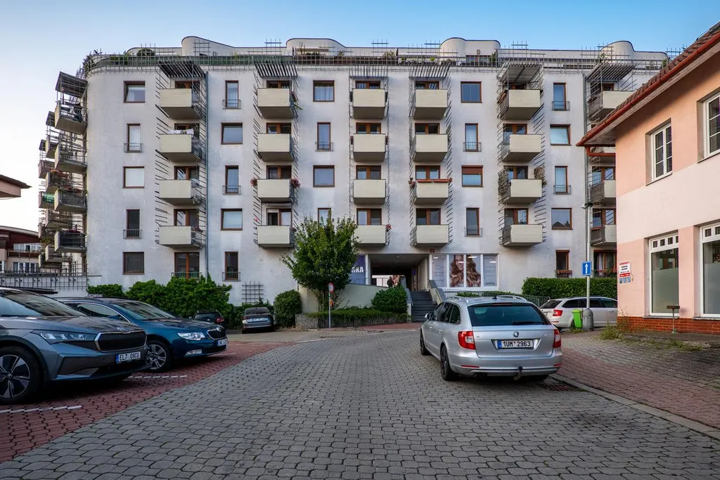 K bytu je možné přikoupit podzemní garážové stání, které se nachází hned ve vedlejším domě. Stání je prostorné a uzpůsobené i pro větší vozy.