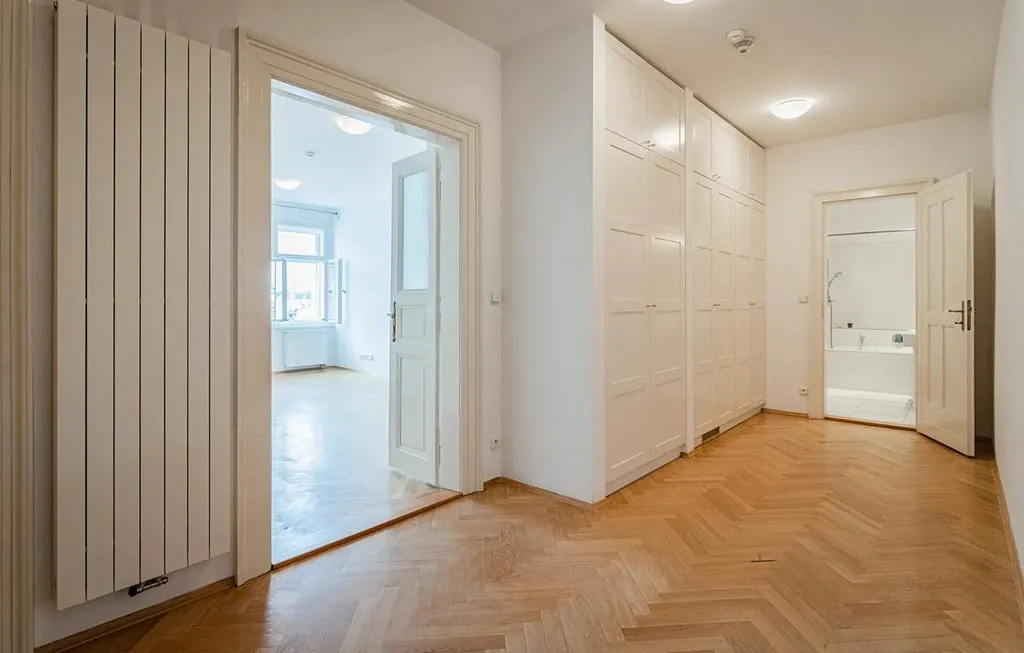 Byt se nachází v 5.patře reprezentativního renovovaného secesního domu s výtahem. Byt je orientován do vnitrobloku, což zajistí klidné bydlení v centru Prahy. Z bytu je krásná vyhlídka na Staré Město, které dominují věže Týnského chrámu a Staroměstské radnice. Byt má celkovou plochu 73 m2, kuch kout je plně vybaven spotřebiči. Byt disponuje prostornou vstupní předsíní s vestavěnými skříněmi, pokojem s kuch. koutem, ložnicí, koupelnou s vanou a toaletou a samostatnou toaletou. Vytápění a ohřev teplé vody zajišťuje plynový kotel. Byt je vhodný pro klienty, kteří hledají bydlení v centru Prahy a přitom ocení klid, který byt nabízí. Je vhodný pro 1 osobu nebo pár.