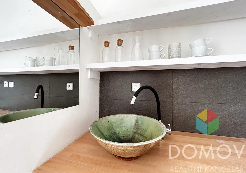 V obytném prostu je praktická vestavěná skříň, je zde nově položená plovoucí podlaha. Jednoduchá kuchyňka je vybavená myčkou, indukční varnou deskou, přenosnou troubou a lednicí. Koupelna se sprchovým koutem je oddělená od toalety. K dispozici zde máte novou pračku.