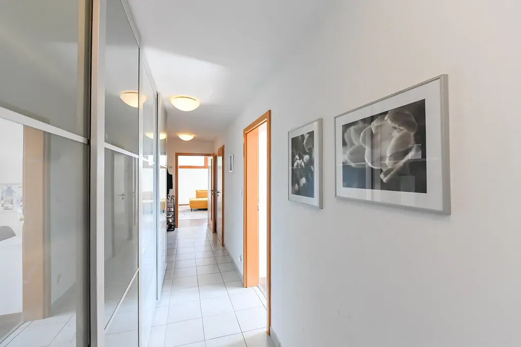 Interiér bytu tvoří vzdušný obývací pokoj s plně vybavenou kuchyňskou linkou a jídelním koutem, se vstupem na terasu. Dále dvě samostatné místnosti vhodné jako ložnice, dětský pokoj či pracovna – obě s přímým vstupem na terasu. K dispozici je koupelna s vanou, samostatná toaleta a vstupní chodba s úložným prostorem. Dominantou bytu je prostorná terasa, ideální pro relaxaci, grilování. Díky orientaci a okolní zeleni si zde užijete klid a soukromí po celý den.