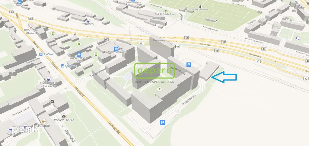 Pak by vás mohla zaujmout garáž v garážovém domě z roku 2018 na adrese Turgeněvova 13 v Brně–Černovicích.
