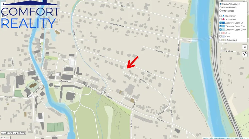 Nabízíme k prodeji stavební pozemek v obci Paskov, situovaný v klidné lokalitě na ulici Mírová, vhodný pro výstavbu rodinného domu.