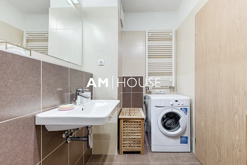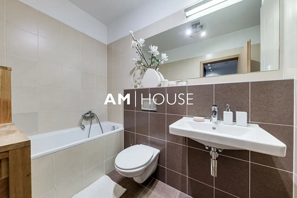 Byt je kompletně zařízený včetně kuchyňského koutu a spotřebiče. V bytě je koupelna a samotné WC.