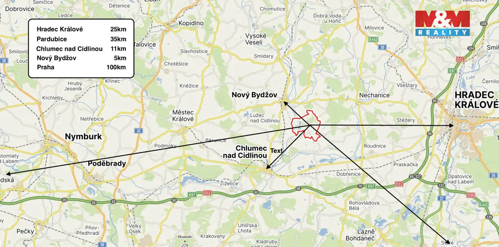 Nemovitost se nachází v klidné obci s výbornou dostupností na dálnici D11, s rychlým spojením směrem na Prahu i Hradec Králové. Ideální volba pro zájemce hledající prémiové bydlení v klidném prostředí bez kompromisů.