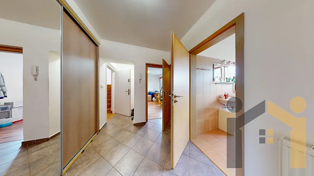 Bytová jednotka s dispozicí 3+kk se nachází ve 3.NP (2.patro) rodinného domu v ulici Hornoměcholupská v Hostivaři. Byt má velikost 76,32m2 + balkon 8,10m2 + dvojgaráž 33m2.
