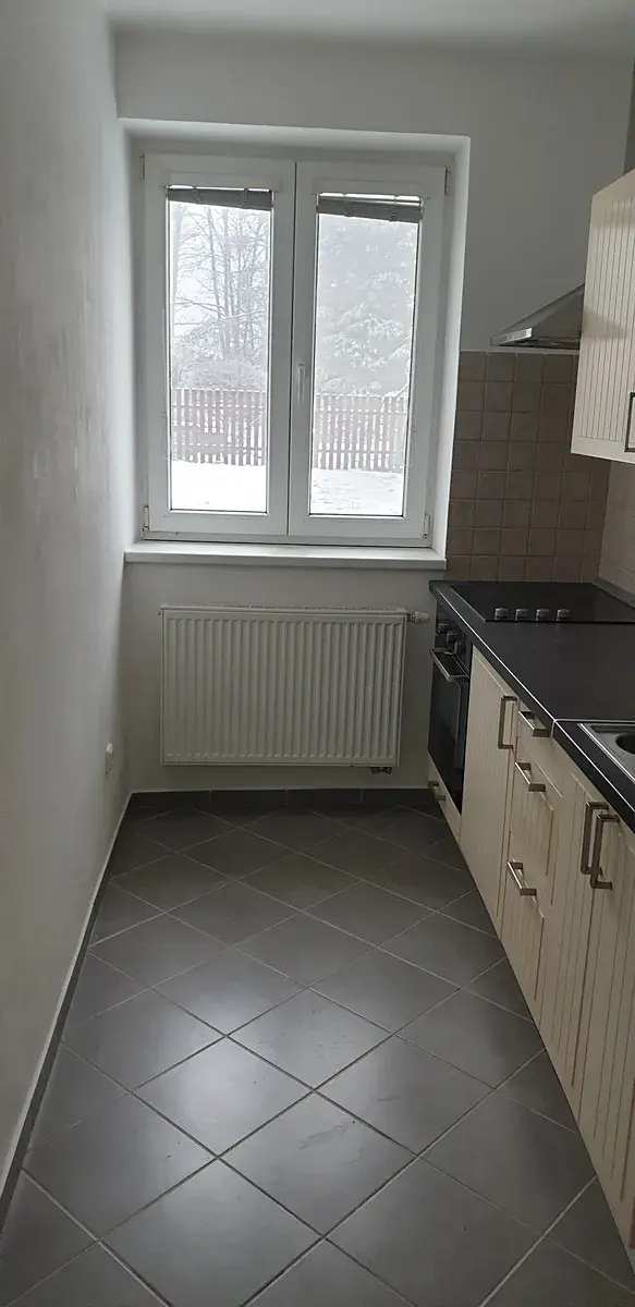 Podlahy plovoucí a dlažba, bytové jádro se sprchovým koutem, kuchyňská linka a sporák v ceně bytu.