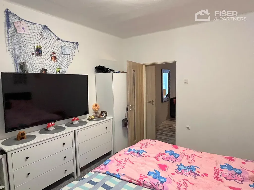 Vynikající dispozice, prostorný obývací pokoj, ložnice, samostatná kuchyň a koupelna.
