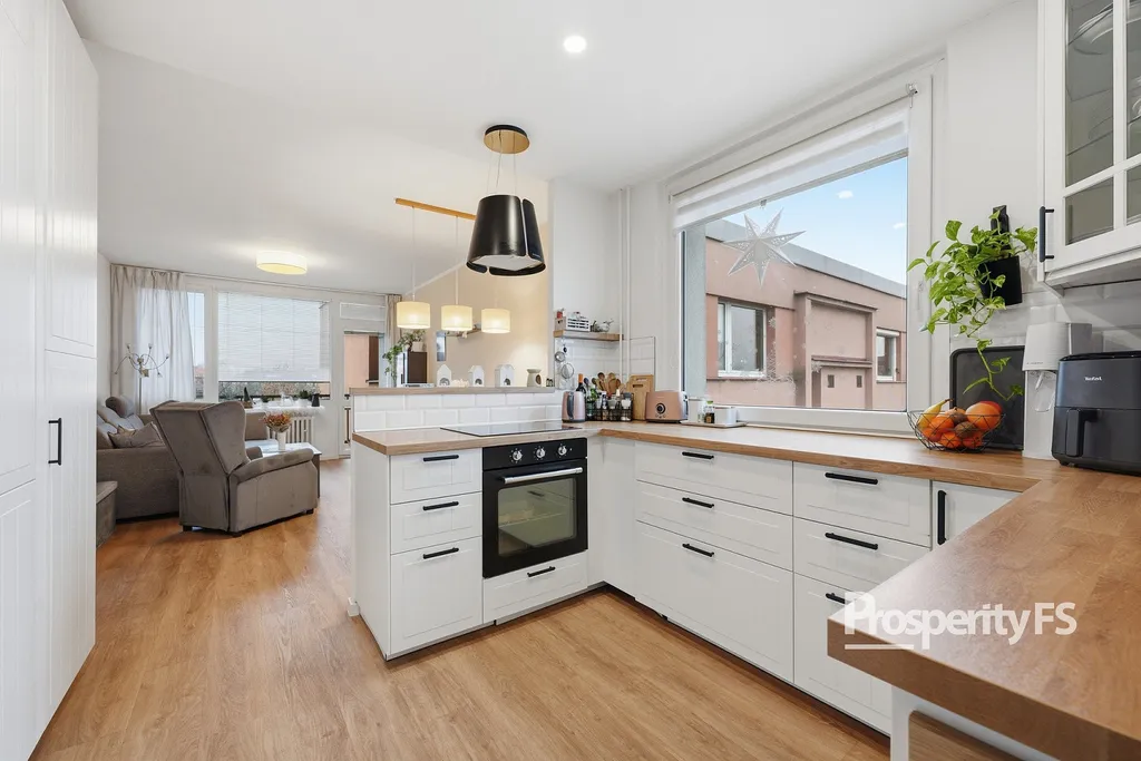 Předměstí nabízí komfortní bydlení v klidné části města. S užitnou plochou 64 m² je ideální velikostí, která byla využita pro zdařilou rekonstrukci za použití kvalitních materiálů a spotřebičů. Byt dále disponuje lodžií o velikosti 3 m², která není započítána do užitné plochy a sklepem pro další úložný prostor.