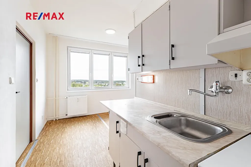 Nemovitost se nachází v sedmém patře panelového domu s výtahem. Byt Vám nabídne prostornou předsíň, koupelnu s vanou, toaletu a spolu s tím jednu obytnou místnost šikovně přepaženou příčkou, která Vám dodá na pocitu dvou místností, z nichž jednu můžete využít jako ložnici. Kuchyně samozřejmě nechybí. Ta je spolu s obývacím prostorem orientovaná na jižní stranu s pěkným výhledem, díky čemuž je byt po celý den přirozeně světlý, aniž by slunce svítilo přímo do oken. A pokud byste potřebovali více úložných prostor, tak v přízemí domů najdete sklepní kóji k tomu určenou. Rozmístění jednotlivých místností a jednotlivé výměry lze vidět na přiloženém půdorysu.
