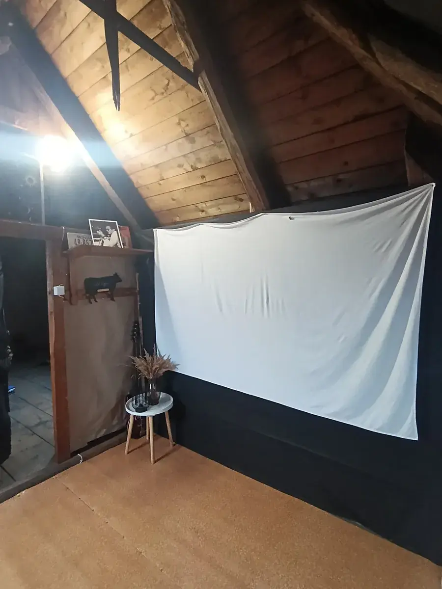 Z chodby (společná pro dva byty), kterou lze využít jako předsíň, se vchází do hlavní místnosti. Ta se člení na obývací část a kuchyňský sektor. Kuchyňský sektor je oddělen od obytné části jídelním stolem a židlemi. Vstup do koupelny se nachází na rozmezí kuchyně a obývací části. Koupelna s oknem je vybavena sprchovým koutem, WC a automatickou pračkou. Na protilehlé straně bytu je situován vstup do malé podkrovní ložnice s přiznanými trámy – viz foto. Nad bytem je vlastní půdní pokoj, možnost jako ateliér či odkládací prostor.