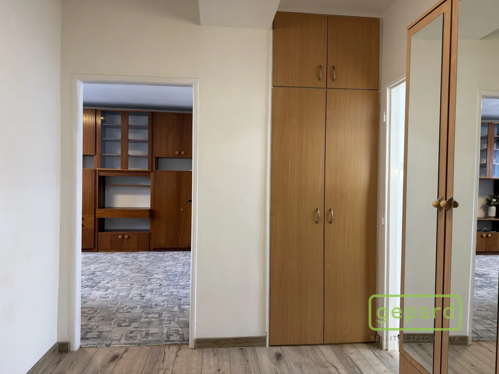 Dispozice bytu nabízí tři samostatné neprůchozí pokoje, kuchyň, špajz, nově zrekonstruovanou koupelnu se sprchovým koutem a samostatné WC. Dostatek úložného prostoru zajišťují vestavěné skříně v předsíni. Celkově byt působí velmi vzdušně a příjemně.
