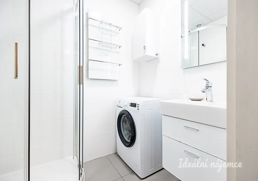 Interiér je nabízen jako částečně vybavený, což vám dává skvělou příležitost doladit si domov přesně podle vlastního vkusu a potřeb. Srdcem bytu je kuchyně s dostatkem prostoru pro jídelní kout, která je plně osazena moderními spotřebiči včetně lednice s mrazákem, elektrické trouby, varné desky, digestoře a myčky nádobí. Obývací pokoj a ložnice jsou ponechány nezařízené, takže si je můžete vybavit vlastní sedací soupravou, postelí či pracovním koutem. Koupelna je vybavena sprchovým koutem, umyvadlem se skříňkou a pračkou, přičemž toaleta je pro větší soukromí a komfort oddělena samostatně.