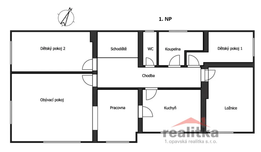 • Patro: prostorný byt 5+1 s pěti samostatnými pokoji, kuchyní, koupelnou s vanou, samostatným WC a chodbou.