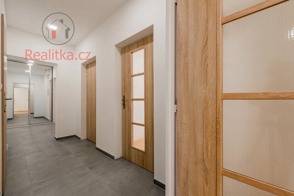 Dominantou bytu je prostorný obývací pokoj se vstupem na zasklenou lodžii. K dispozici jsou dále dvě samostatné ložnice, z nichž jedna má rovněž vstup na zasklenou lodžii. Samostatná kuchyně nabízí další lodžii, což zajišťuje dostatek světla a příjemný prostor pro každodenní život. V rámci rekonstrukce se podařilo vytvořit uprostřed bytu prostornou šatnu.