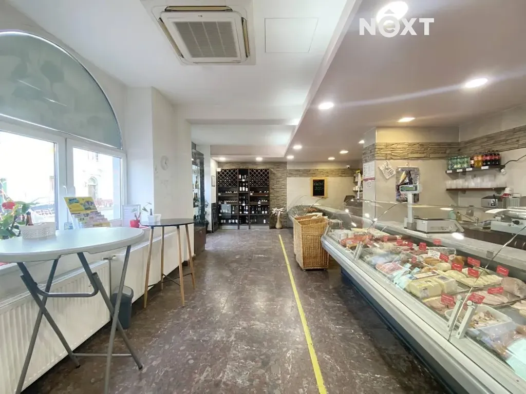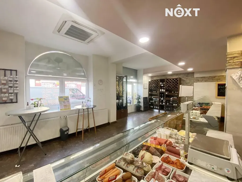 Hlavní prodejní prostor o ploše cca 80 m2 s příslušenstvím a výdejními pulty, zbylá část prostoru je tvořena zázemím - dvě místnosti nyní využívané jako kancelář a šatna, kuchyňka, přípravna, toalety, sprcha, sklady, chladící boxy, mrazáky.