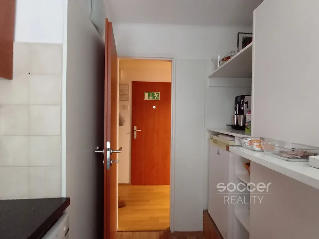 Na společné chodbě je též k dispozici koupelna s vanou a další WC a společná velká kuchyňka.