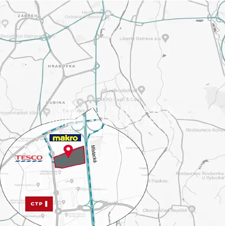 Nachází se u hlavní výpadovky na Frýdek Místek (Místecká) vedle stávající prodejny Makro a v těsné blízkosti hypermarketu Tesco, v rámci zavedené obchodní a průmyslové zóny.