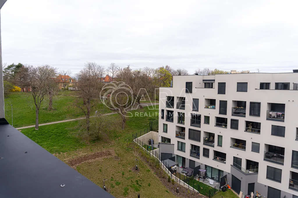 Byt se nachází v 6. nadzemním podlaží novostavby v projektu Byty u parku Na Vackově, přímo u parku Židovské pece. Ve vzdálenosti cca 600 m je tramvajová zastávka Strážní, v blízkosti také zastávka Vozovna Žižkov. V docházkové vzdálenosti se nachází také autobusové zastávky s přímým spojením na stanice metra Florenc a Želivského, stejně jako supermarket Albert a drogerie Rossmann.