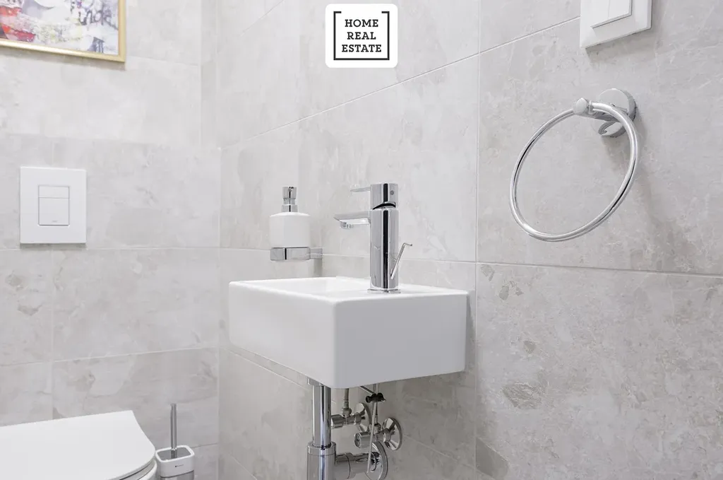 - koupelny, která nabízí krásnou vanu se sprchovým setem, umyvadlo se skříňkou, zrcadlo s LED osvětlením, další WC a pračku se sušičkou,