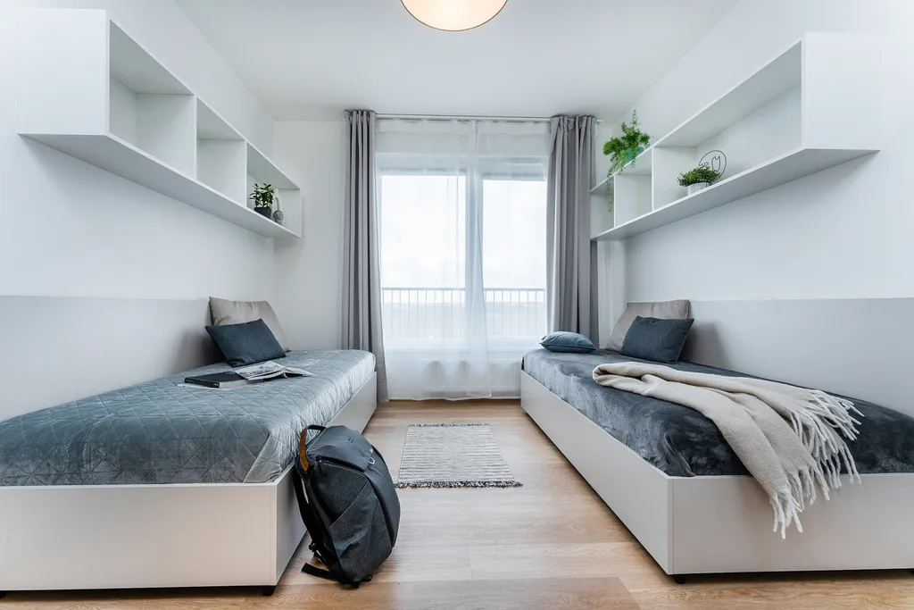 Byt je rozložený na dvě ložnice a obývací pokoj spojený s jídelnou. Je vybavený kuchyňskou linkou včetně všech potřebných spotřebičů. Jeho součástí je prostorná koupelna se sprchovým koutem a parní pračkou. Samozřejmostí je také vybavenost veškerým nábytkem. Těšit se můžete na postele s pohodlnou kvalitní matrací. Dále je v bytě k dispozici televizor, dostatek promyšlených úložných prostor a v neposlední řadě rozkládací pohovka. Bonusem bude příjemné posezení na prosluněném balkonu.