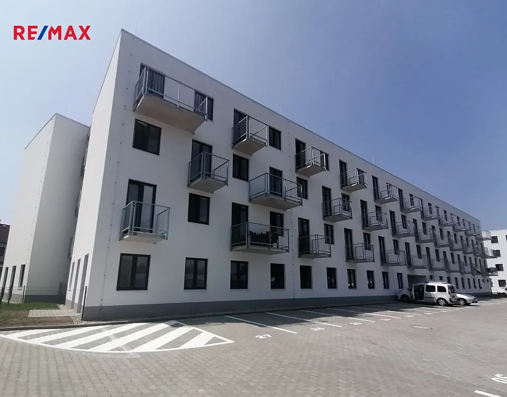 Byt se sestává ze vstupní předsíně, obývacího pokoje s kuchyňským koutem, balkónem, ložnice s balkónem a koupelny s WC. K bytu patří sklepní kóje v přízemí domu (2,2 m2) a dále venkovní parkovací stání.