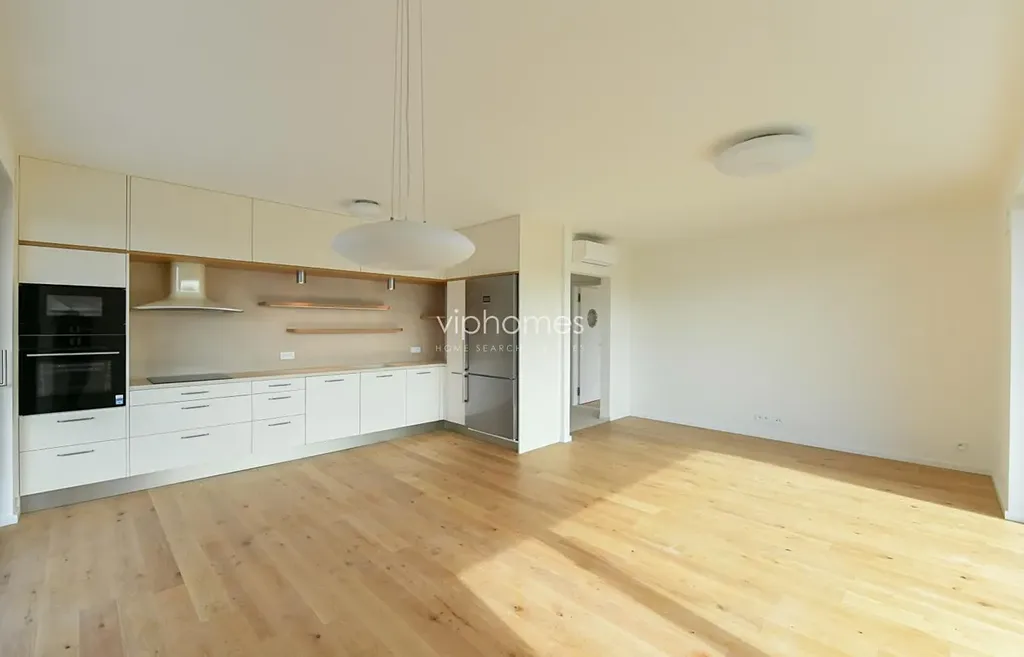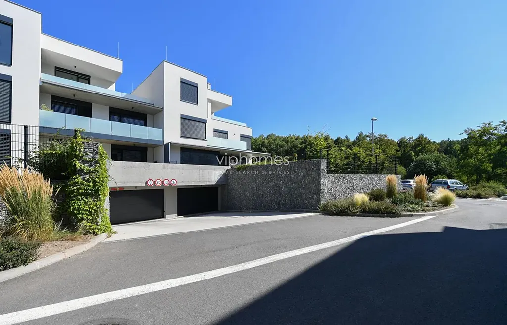 Byt je umístěn v posledním patře domu s velkou terasou, která skýtá soukromí a s další terasou u ložnice s výhledem do lesoparku. Obývací pokoj je propojen s moderní kuchyňskou linkou vybavenou kvalitními spotřebiči (el. keram. deska, lednice s mrazákem, myčka, digestoř, el. trouba, mikrovlnná trouba). 2 ložnice, 2 koupelny.