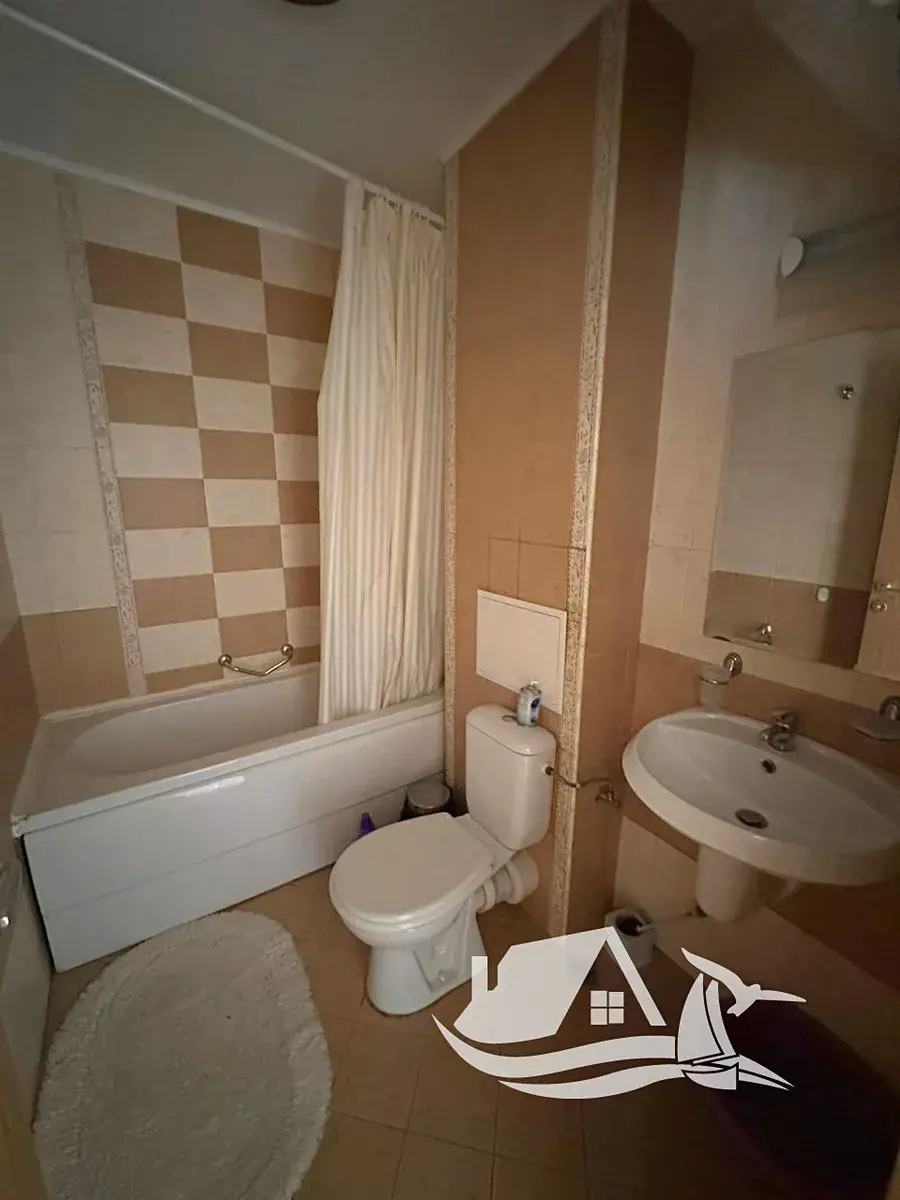 Pláž je vzdálena přibližně 450 metrů a nabízí široké písečné pobřeží s pozvolným vstupem do moře. Okolí je bohaté na restaurace, kavárny, trhy, obchody i zábavu pro děti i dospělé. Slunečné pobřeží je známé svou živou atmosférou, aquaparky, sportovními aktivitami i dlouhou promenádou. Jen pár minut jízdy se nachází historický Nesebar zapsaný na seznamu UNESCO, ideální pro výlety a večerní procházky.