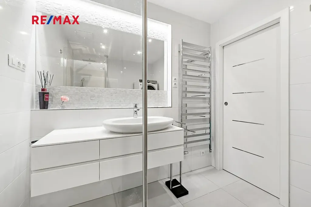 Byt je plně zařízen a nabízí vysoký standard: kvalitní kuchyňská linka a designové vybavení, vestavěné skříně a dostatek úložného prostoru, francouzská okna, orientace na jih a západ, zaručující mnoho slunečního svitu, parketová podlaha z přírodního dřeva a moderní velká koupelna se sprchovým koutem. Konstrukce domu je železobetonová, cihlové zdivo, zateplená fasáda, izolační trojskla, výtah, energeticky úsporné řešení.