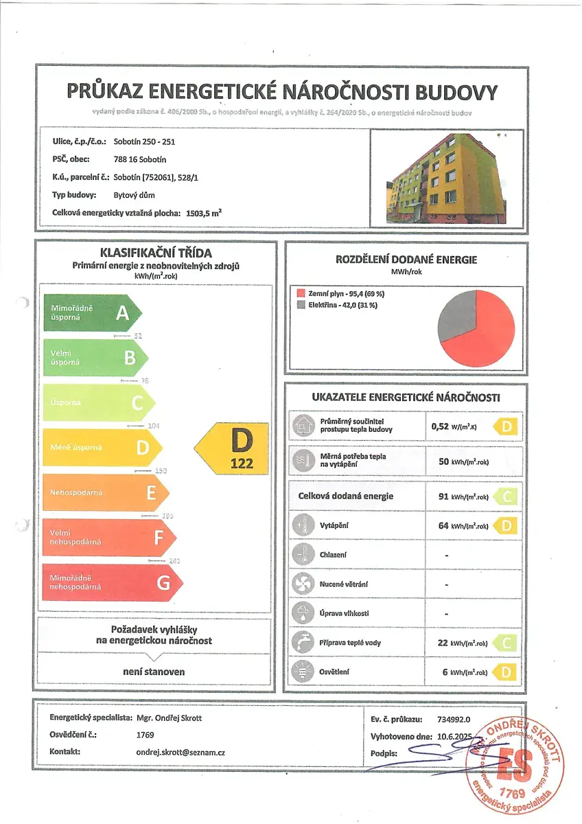 • energetická náročnost budovy: třída D