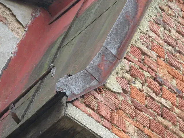 s plechovou krytinou. Na střeše jsou žlaby se svody. Klempířské prvky jsou z pozinkovaného