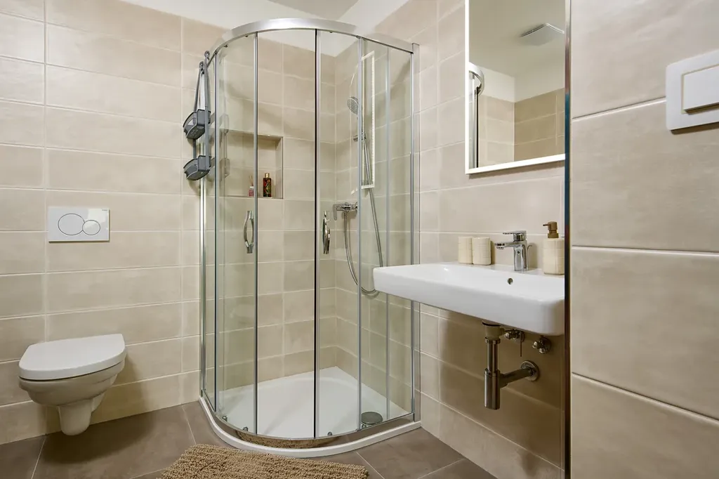 Apartmán v prvním patře Rezidence je dokončen s hotovou koupelnou a podlahovými krytinami, přičemž dokončení interiéru je zcela ve vašich rukou – podle vašeho vkusu a potřeb.