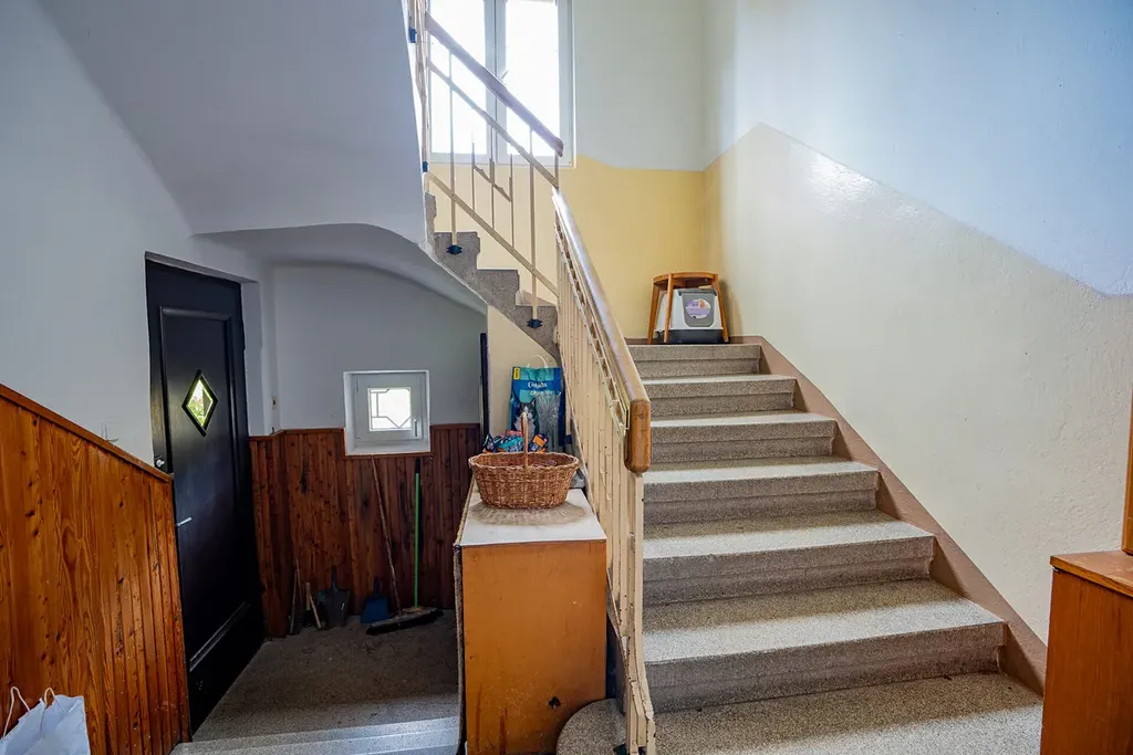Nabízím udržovaný vícegenerační rodinný dům o třech bytových jednotkách s prostornou zahradou a garážemi v ulici Komenského v Tanvaldě. Dům se nachází na slunném klidném místě nedaleko centra s výhledem na Šumburk n.D. Jedná se o samostatně stojící rodinný dům o jednom podzemním podlaží, kde se nachází sklady, dílna, kotelna a sklepní kóje, a třech nadzemních podlažích, ve kterých je vždy umístěna bytová jednotka o velikosti 3+1. K dispozici je také společná půda. Každý byt má vlastní elektrickou přípojku, poměrové měření vody a samostatný ohřev teplé vody pomocí plynové karmy. Společné je však ústřední plynové vytápění. V případě potřeby je zde i záložní kotel na tuhá paliva. Objekt je napojený na obecní vodovod a kanalizace je svedena do septiku. K domu patří udržovaná zahrada o výměře 1.362 m2, na které se nachází ovocné stromy a keře, dále pak dřevěná pergola. K Dispozici je také velká dvojgaráž od zast. ploše 91 m2 a jedno zastřešené parkovací stání. Dům i garáže jsou celoročně přístupné po místní asfaltové komunikaci. Rodinný dům je vhodný pro početnou rodinu nebo jako investici na pronájem jednotlivých bytů. Volné dohodou.