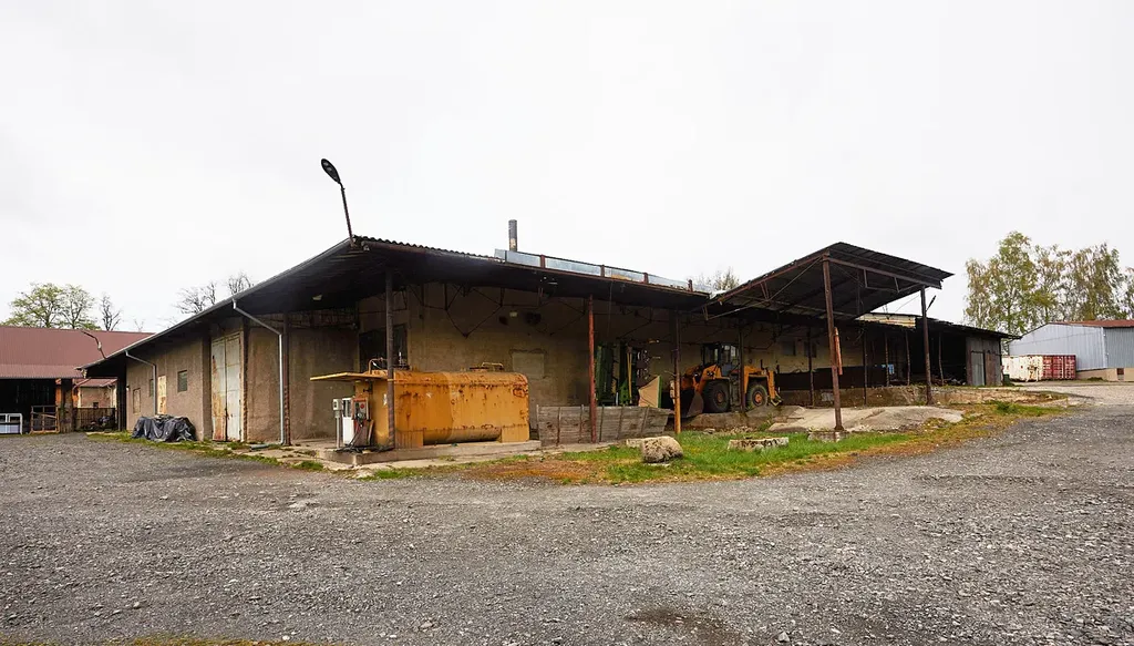 - areál má samostatný vjezd v severní části mimo zástavbu obce a v současné době se používá jako sklady, pneuservis a zázemí zemědělského podniku
