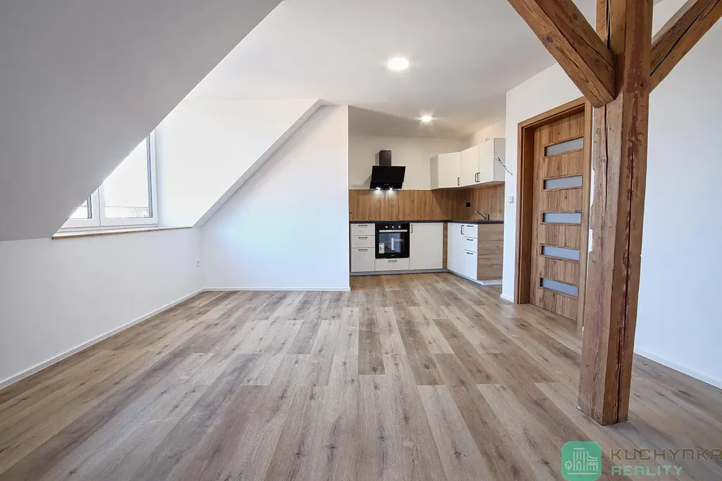 Podkrovní bytová jednotka o dispozici 3kk/75 m2 se nachází ve 3. podlaží (2. patro).