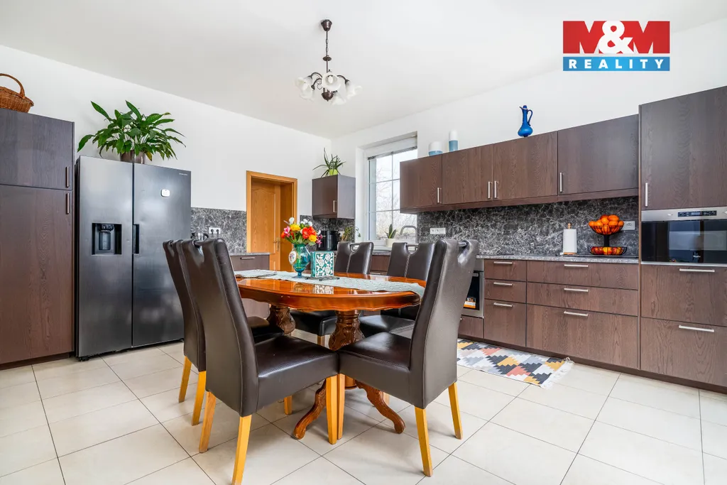 Nabízíme k prodeji nádherný a velkorysý dům o dispozici 7+1 a podlahové ploše 310 m², který se nachází v Horoměřicích. Tento dům splní všechna Vaše očekávání. S pěti koupelnami a pěti neprůchozími pokoji si každý člen rodiny užije dostatek soukromí. Pracovna poskytne ideální prostor pro home office, zatímco prostorný obývací pokoj s krbem a propojenou kuchyní se stane srdcem Vašeho domova. Podlahové vytápění v přízemí zajistí příjemné teplo, klimatizace v obýváku a hlavní ložnici zase osvěžení v horkých dnech. O Vaši bezpečnost se postará moderní bezpečnostní systém.