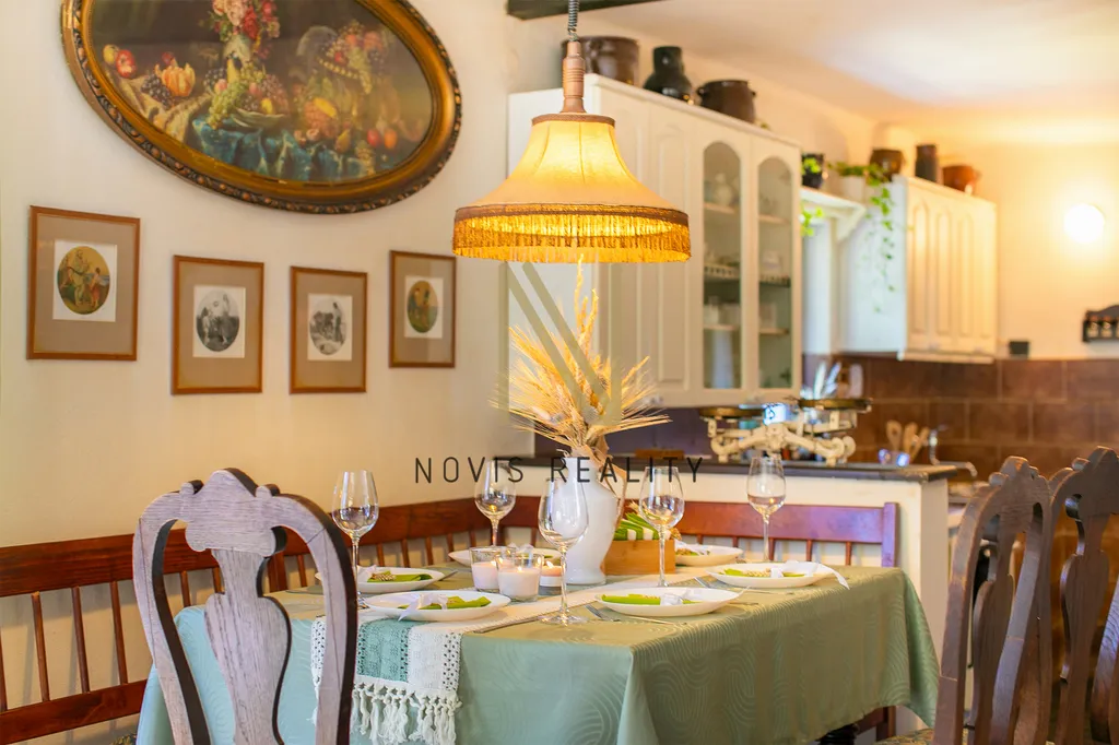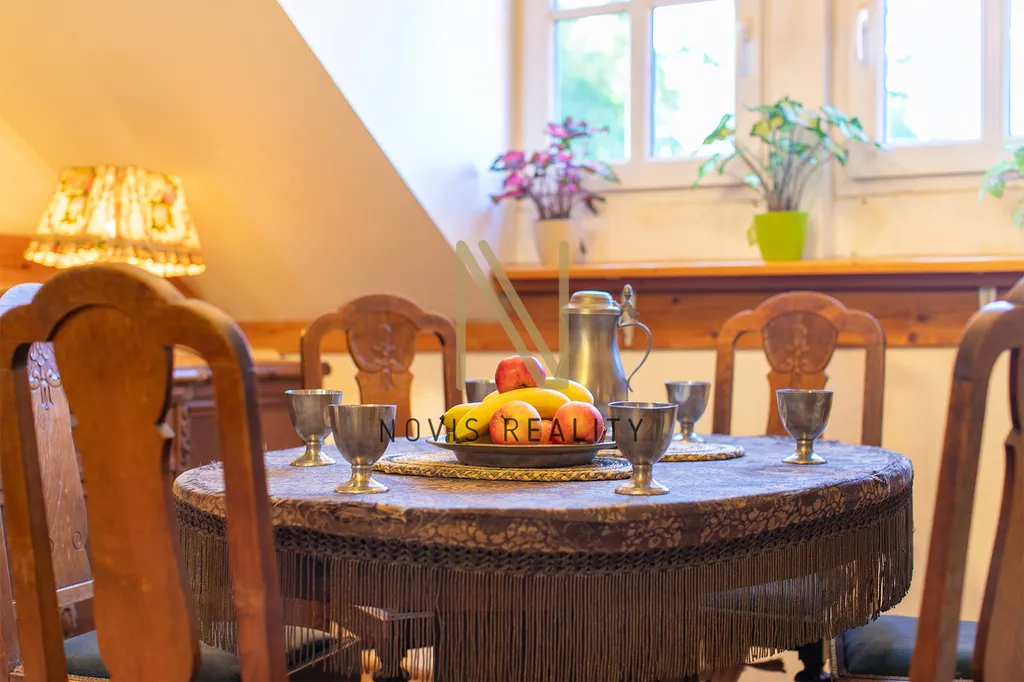 Patrový dům s atypickým designem, se pyšní zastavěnou plochou 216 m² a je umístěn na pozemku o velikosti 1181 m², který poskytuje dostatek prostoru pro zahradní aktivity a relaxaci. Vstup do domu vás zve do příjemně uspořádaných interiérů, které jsou částečně zařízené a nabízejí obrovský potenciál pro osobní úpravy. V přízemí se nachází obývací pokoj s jídelnou, ze kterého vedou dveře na prostornou terasu – ideální místo pro ranní kávu s výhledem do zahrady. Kuchyň je praktická, vybavená zděným kachlovým sporákem s pláty a troubou, který navozuje nostalgickou atmosféru domova a špajzem pro všechny vaše zásoby. Pro okamžité pohodlí zde najdete i koupelnu s vanou a WC. V přízemí se nachází ještě jeden pokoj a z chodby projdete rovnou do garáže.