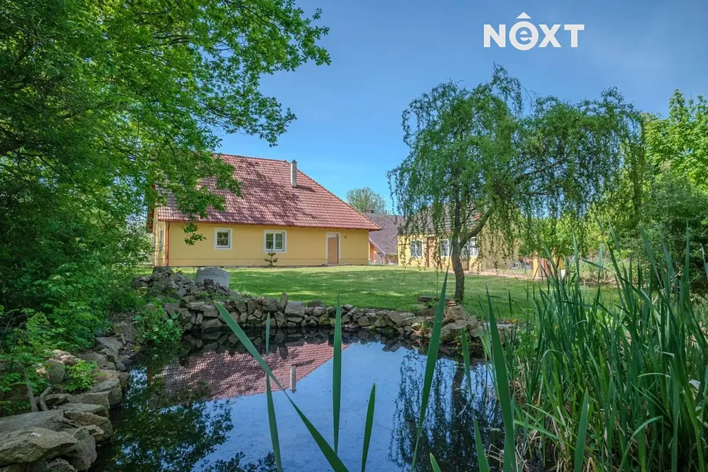 Na udržovaném pozemku se nachází bazén ideální pro letní osvěžení a také okrasné jezírko, které podtrhuje příjemnou atmosféru zahrady. Terasa navazující na obývací pokoj slouží jako ideální místo pro relaxaci, posezení s rodinou či přáteli.