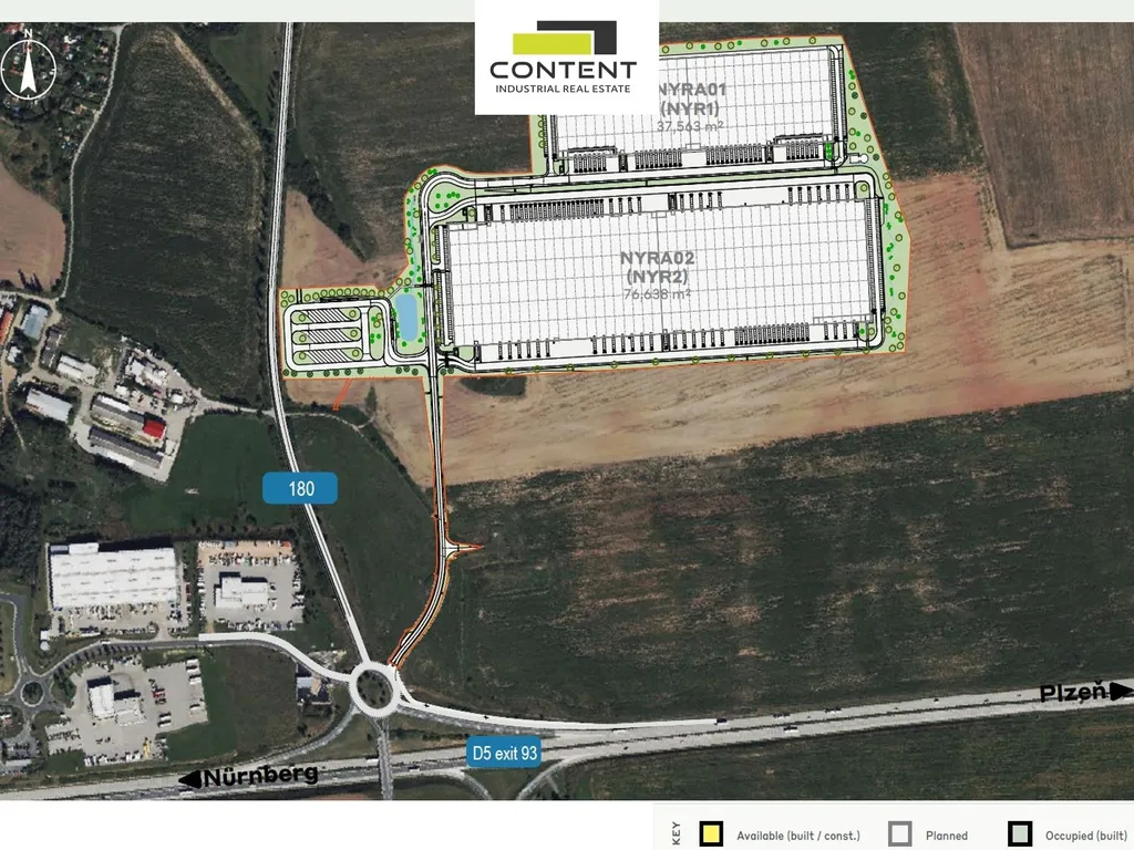 Pronájem skladu, výrobních prostor 18.782 m² Plzeň - Nýřany, D5 EXIT 93