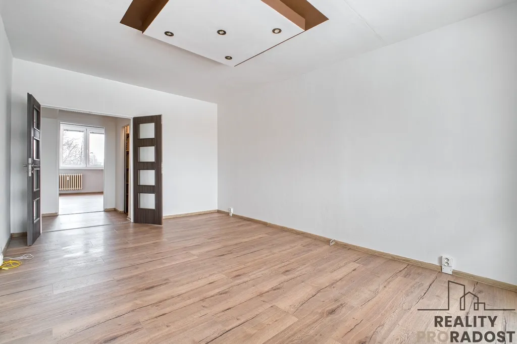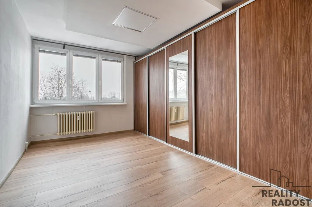 V kuchyni o velikosti 12 ,2 m se nachází kuchyňská linka včetně sporáku a nerezového dřezu s baterií. Kuchyně nabízí dostatek prostoru i pro umístění jídelního stolu. Obývací pokoj čítá velikosti 5,3 x 3,5 m, je z něj výstup na zasklenou lodžii o velikosti cca 4 m2, orientace na jihovýchod. Ložnice je orientována na severozápad a nabízí rozměry 4,5 x 3,5 m, nachází se zde vestavěná skříň. Výhodou je praktická komora o velikosti 2,5 m2. K bytu náleží sklepní kóje.
