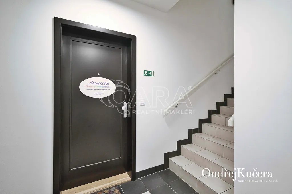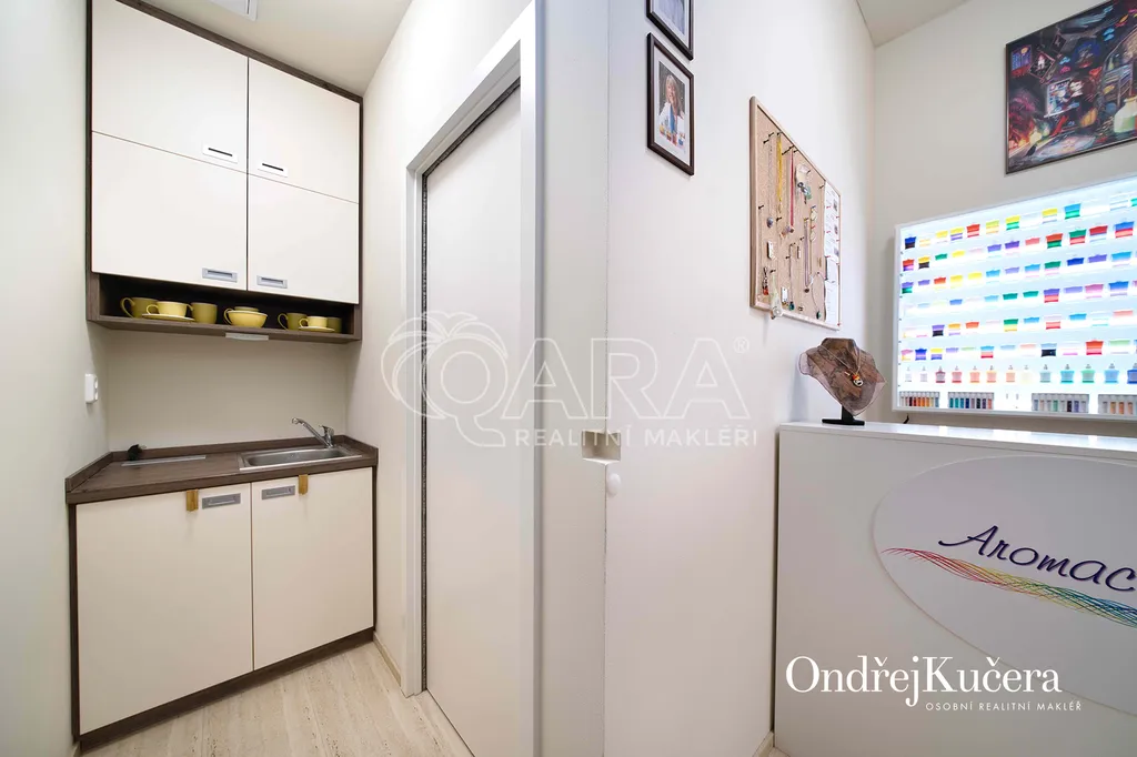 Má 25,7 m² s dispozicí jedné velké místnosti s částečně odděleným pultem a zázemím, k tomu malý kuchyňský kout s lednicí a dřezem, koupelna se sprchou a toaletou. Prostor je umístěný v 1. podzemním podlaží a je zkolaudován pro komerční využití a je připraven k okamžitému provozu bez nutnosti dalších investic. Rekonstrukce proběhla v roce 2021. Podlahy jsou převážně vinyl v hlavním prostoru a keramická dlažba v koupelně, nové příčky jsou z Ytongu, podhledy sádrokartonové. Okno s izolačním dvojsklem je orientováno do klidného vnitrobloku. Vstupní dveře jsou bezpečnostní, osazené v ocelové zárubni. Vytápění je všude řešeno podlahovým topením z centrálního zdroje, v koupelně je navíc topný žebřík s možností elektrického provozu.