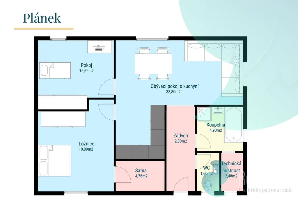 Dům je postaven nejen útulně, ale i prakticky. Vytápění je zajištěno tepelným čerpadlem a podlahovým vytápěním v každé místnosti a k tomu je v obývací části domu možnost na připojení krbových kamen, která dotvoří útulnost interiéru i v měsících, kdy se již moc netopí.
