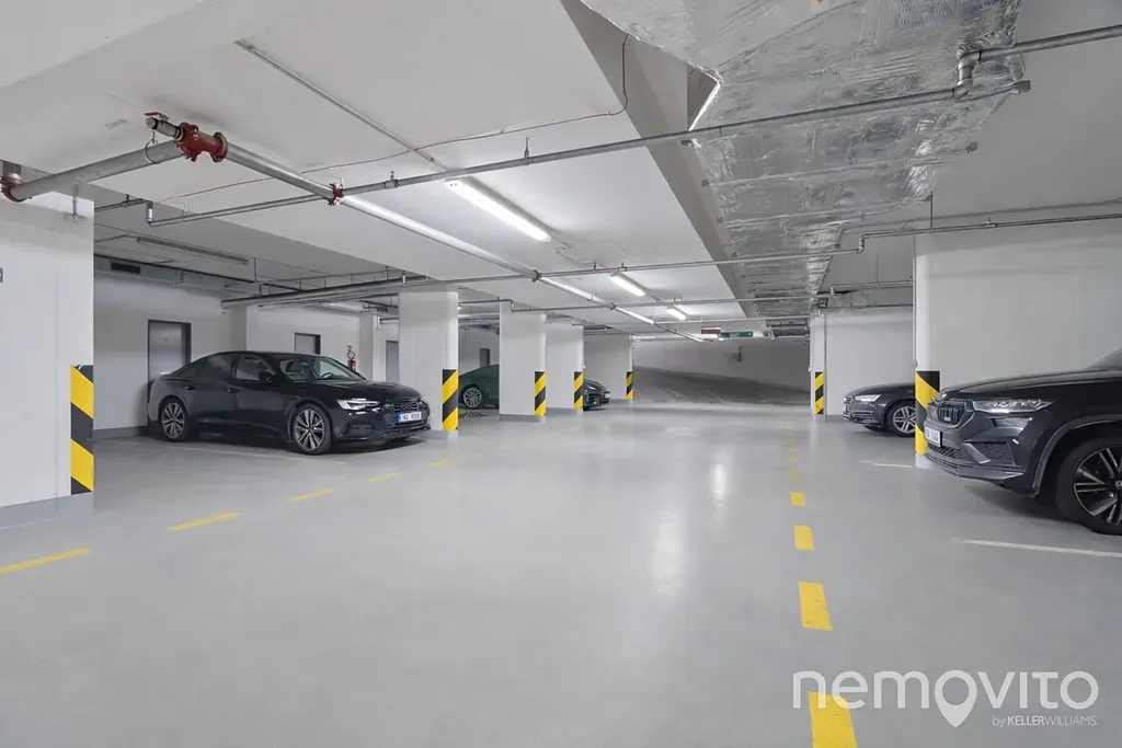 Rezidenční dům je moderní, udržovaný a architektonicky nadčasový. K bytu náleží prostorný sklep v 1. podzemním podlaží a parkovací stání v podzemní garáži přímo v domě.