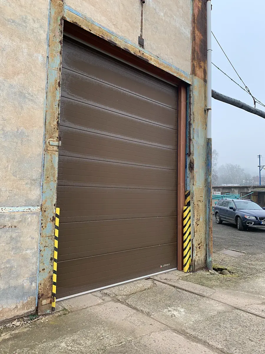 - Vjezdová sekční vrata o rozměru cca 3,5m x 4,6m. Možný vjezd nákladní dopravy do haly.