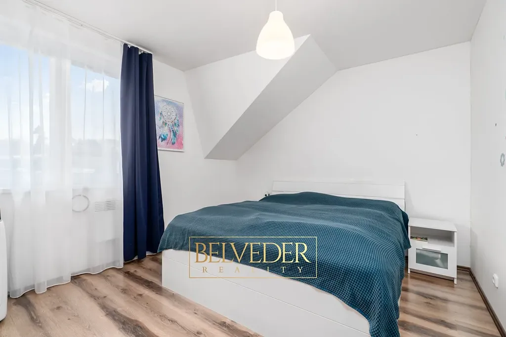 Dispozičně je byt řešen velmi prakticky. V přízemí se nachází světlý obývací pokoj s kuchyňským koutem, který přirozeně slouží jako centrum rodinného života, s přímým vstupem na terasu a zahradu, kde si děti mohou bezpečně hrát a rodiče relaxovat. Součástí přízemí je také koupelna se sprchovým koutem a toaletou, která je velmi praktická pro každodenní provoz. V patře jsou umístěny dvě samostatné ložnice, ideální jako dětské pokoje a ložnice rodičů, a druhá koupelna s vanou.