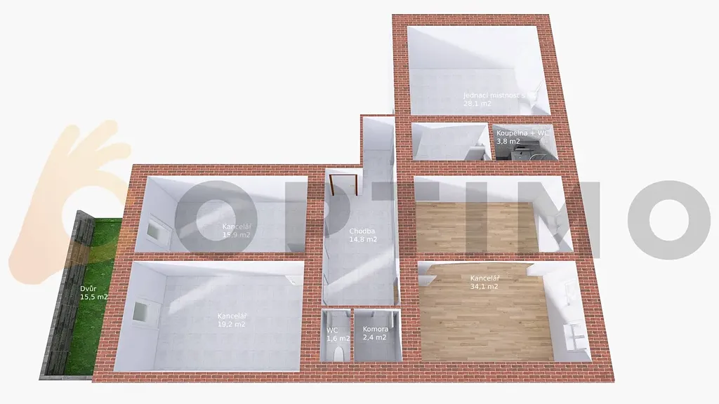 Komfortní vybavení - částečně zařízený prostor, který můžete přizpůsobit svým potřebám.