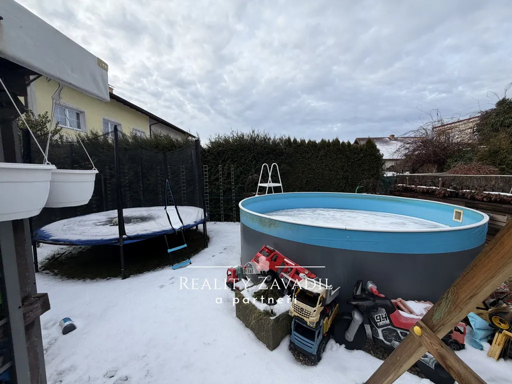 Celková plocha pozemku činí 340 m². Za domem se rozprostírá oplocená zahrada, která poskytuje dostatek soukromí pro relaxaci či zahradničení. Ulice Třešňová patří mezi vyhledávané a klidné lokality ve Zlivi. Město disponuje kompletní občanskou vybaveností (škola, školka, obchody, zdravotní středisko) a nabízí výbornou dopravní dostupnost do Českých Budějovic i Hluboké nad Vltavou (vlak, autobus).