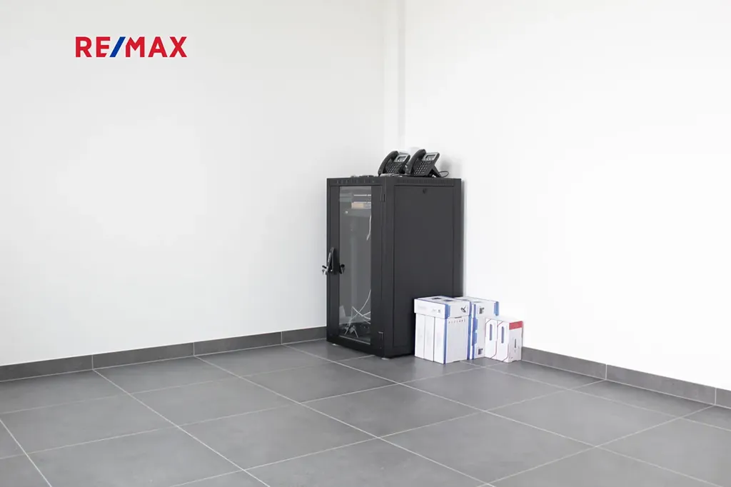 Internet si nájemník zařizuje sám. V patře (v prostorách budoucí společné kuchyňky) se nachází nová serverovna.